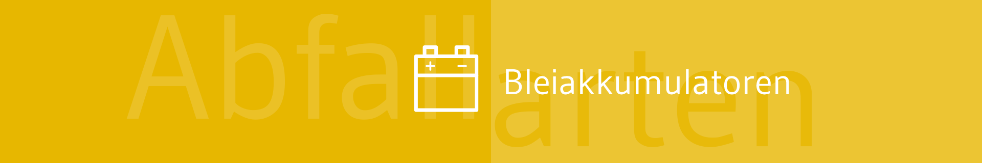 Bleiakkumulatoren zählen zur Abfallart Akkus. Dazu gehören nur unverbaute Akkus, die als Einzelteile entsorgt werden können.
